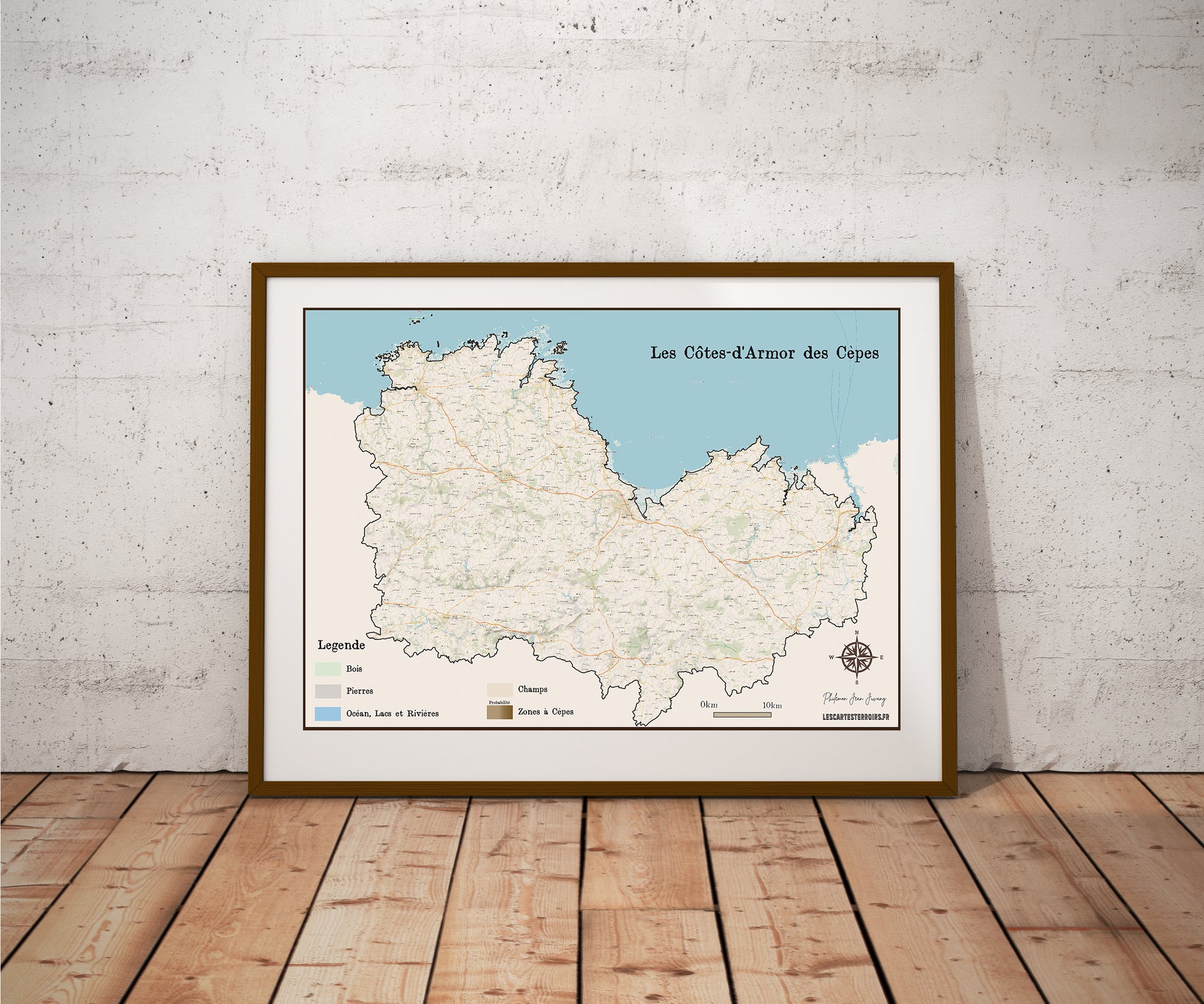 Offrez la carte des coins à Cèpes des Côtes-d’Armor (22) à un passionné de champignons ou à un amoureux de la Bretagne.