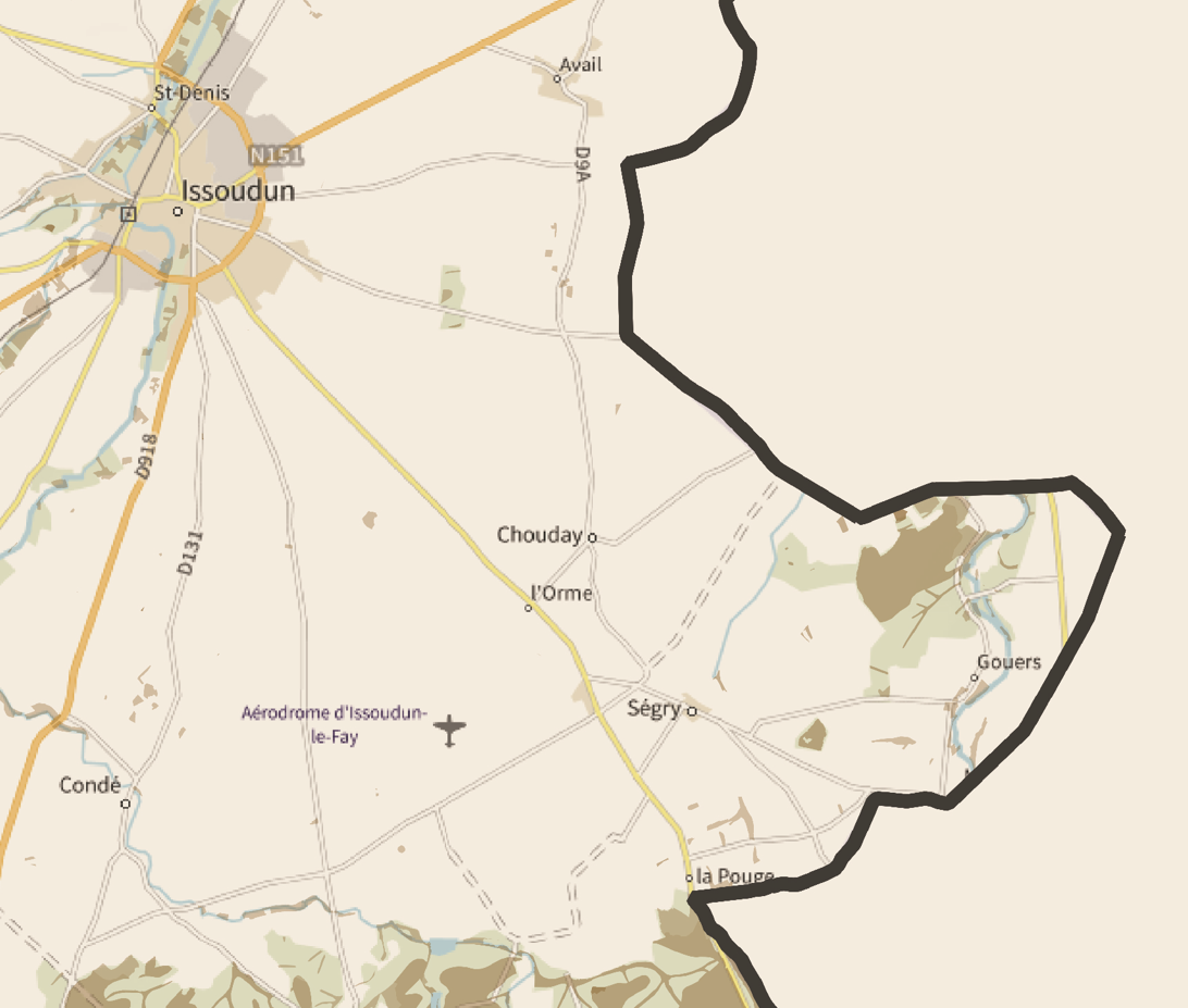 36-Indre Carte des coins à Cèpes