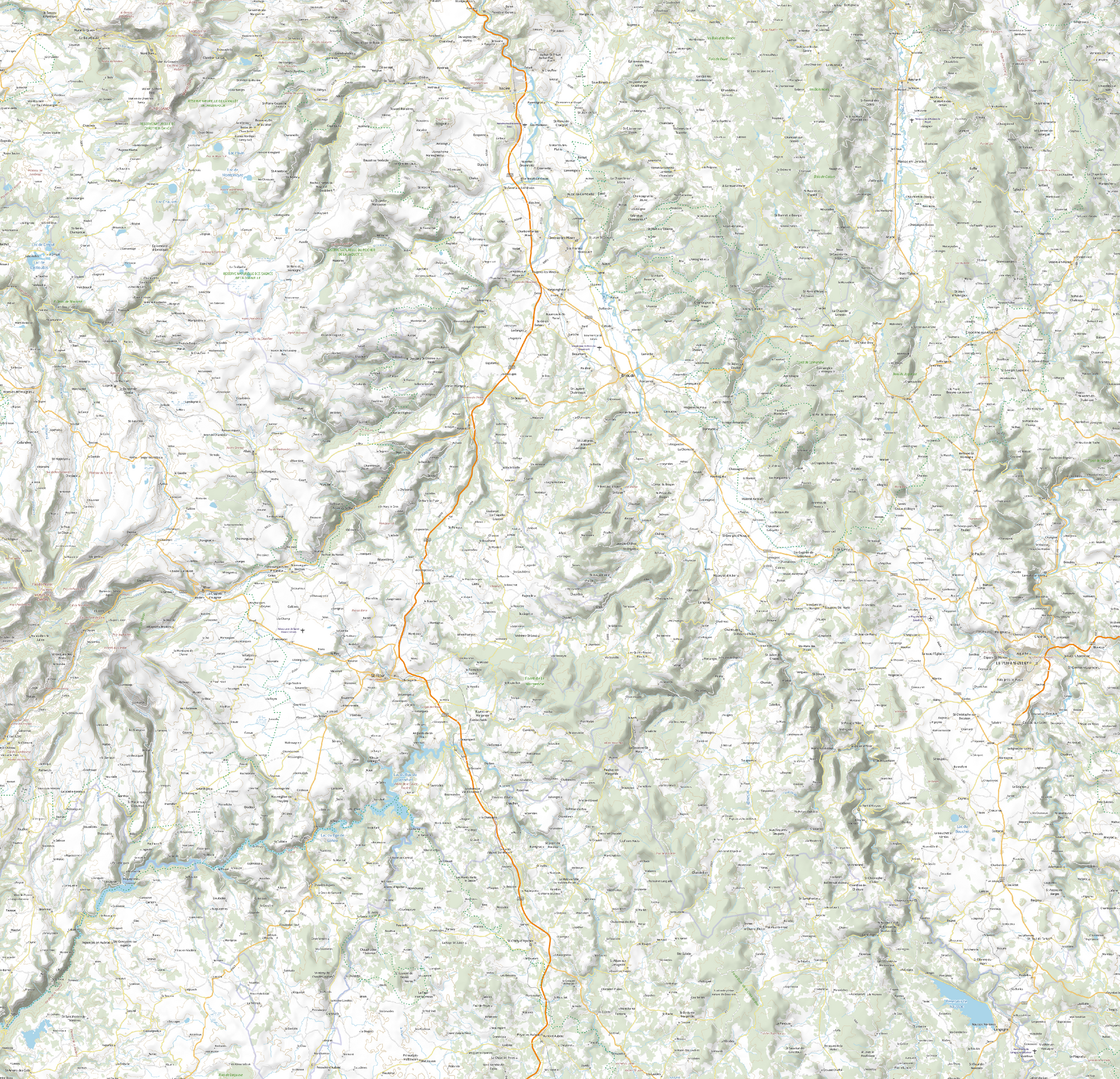 Carte englobant le nord e la haute-loire, le sud du puy de dome et l'est du cantal pour Cèpes, Morilles et Girolles.