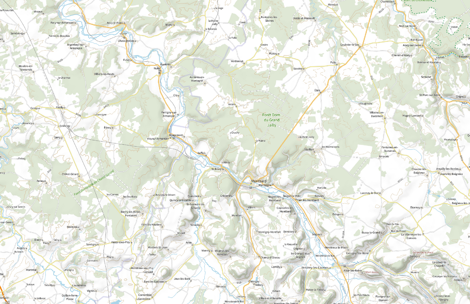 Carte centrée autour de la commune de Crepand pour les Girolles et les Trompettes de la Mort. Titre : à définir.