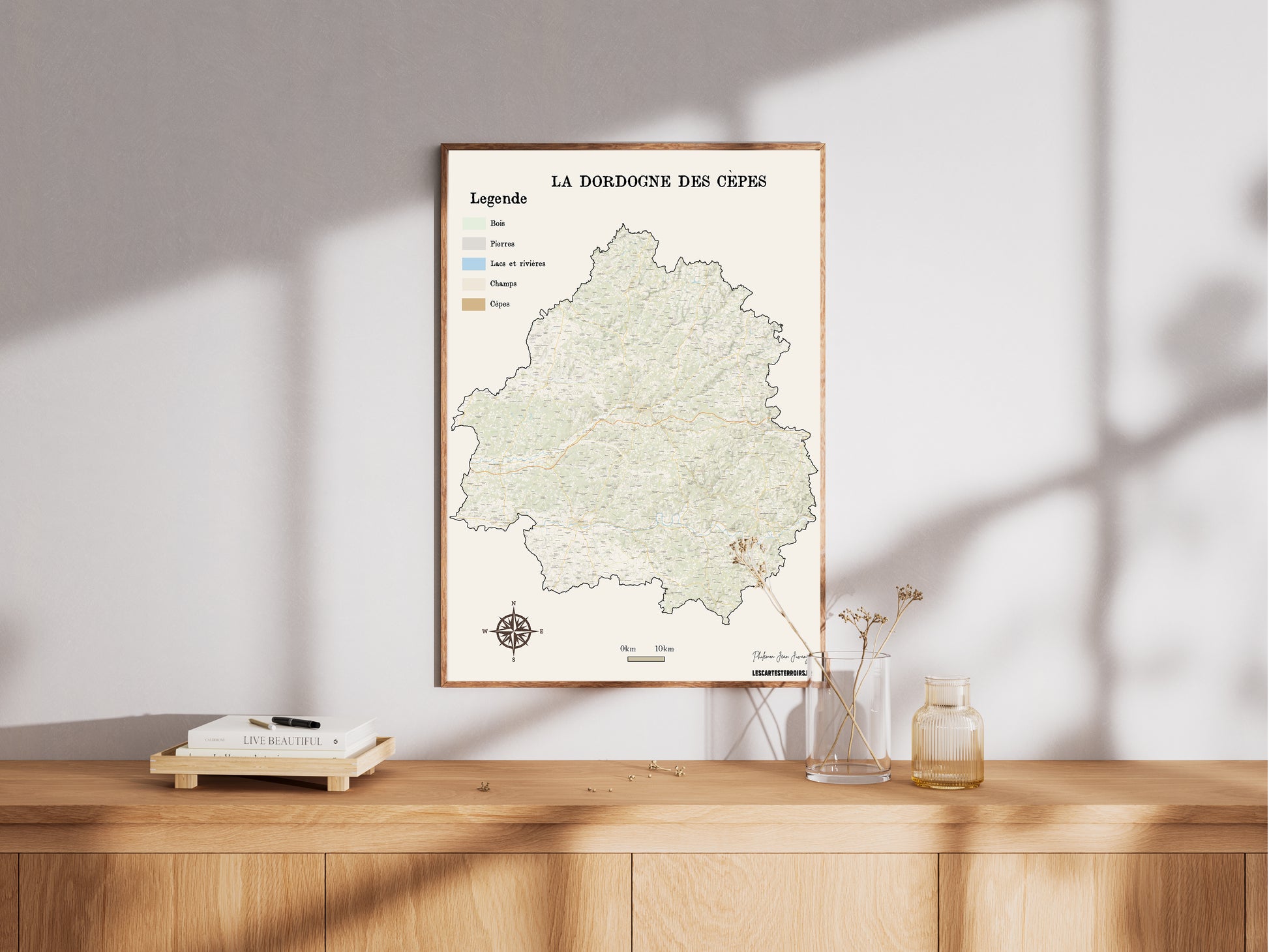 Décorative et instructive, cette carte vous indique les zones les plus favorables à la pousse des Cèpes dans le 24, tout en célébrant l’âme du Périgord.