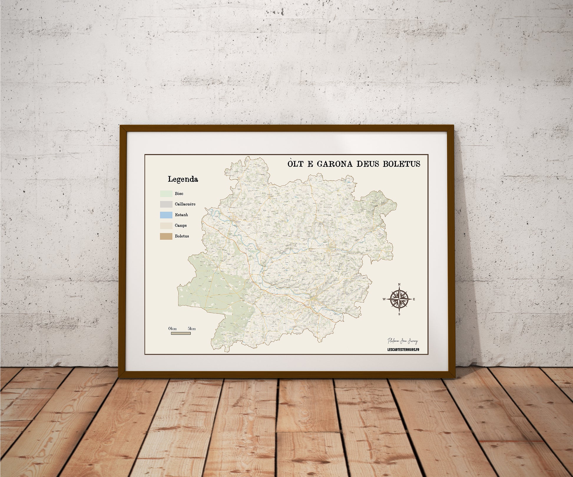 À accrocher dans votre salon, votre cuisine ou au-dessus de la cheminée, cette carte décorative au format papier apportera une touche authentique à votre intérieur tout en vous révélant les zones les plus propices à la pousse des cèpes.