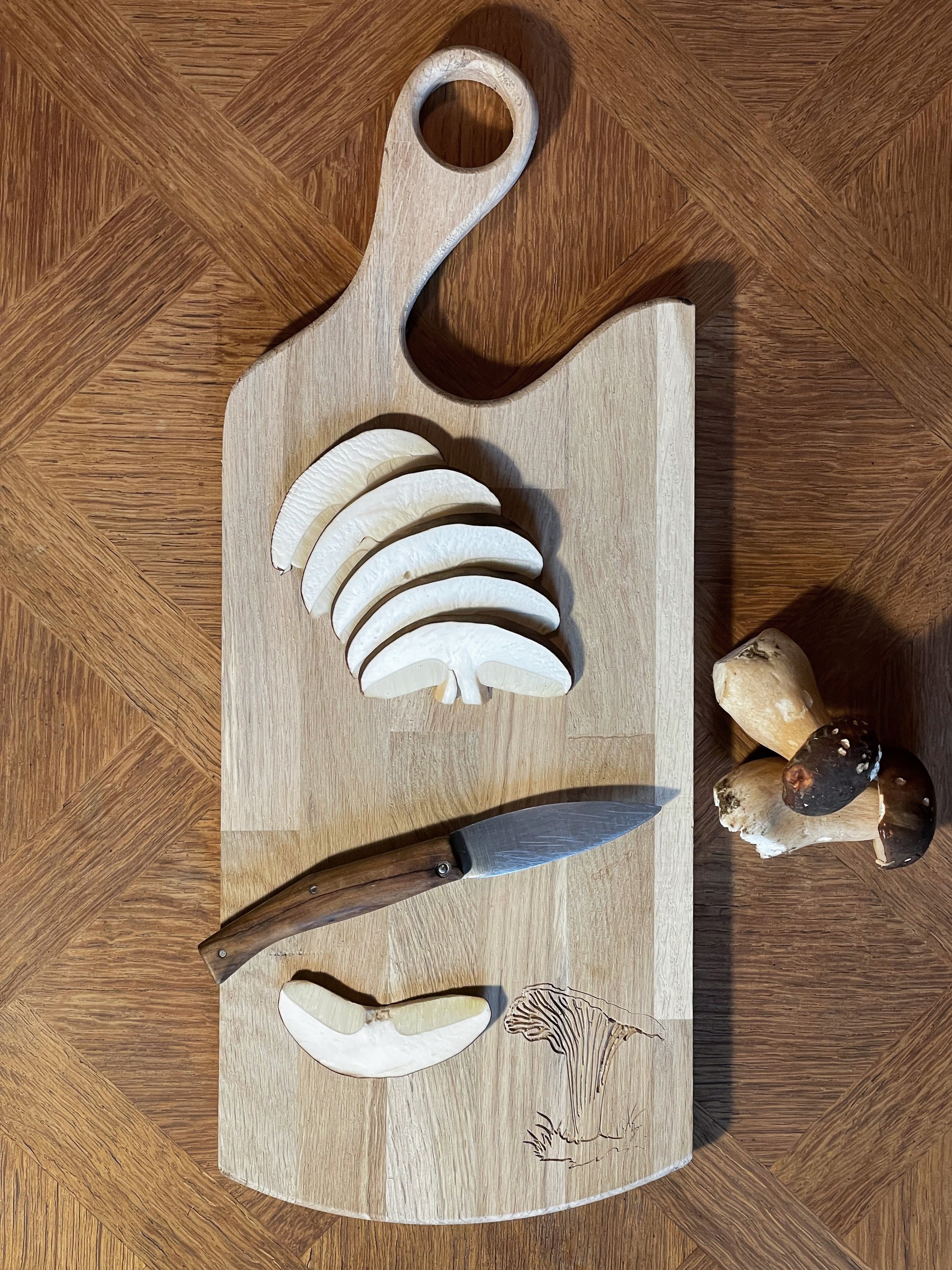 Parfaite pour la découpe de vos champignons fraîchement cueillis ou pour présenter vos apéritifs, elle conjugue praticité et esthétique. Plus qu’un simple ustensile, c’est un objet de caractère qui sublimera vos moments de partage.
